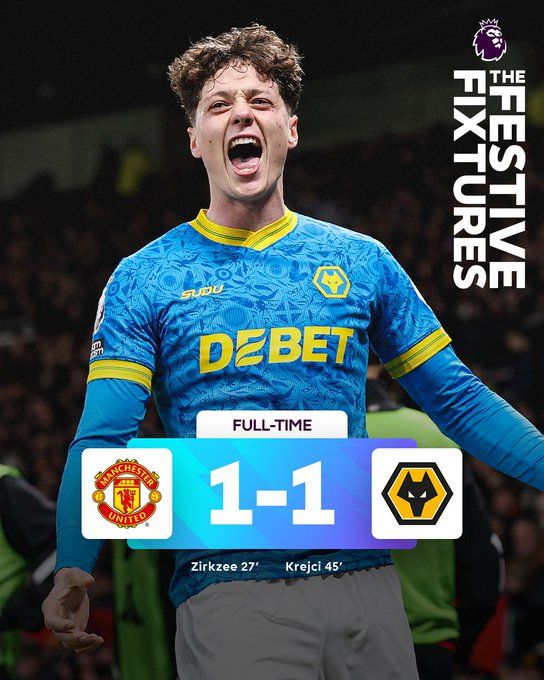北京時間12月31日04:15,英超聯賽第19輪,曼徹斯特聯坐鎮主場迎戰狼隊。上半場齊爾克澤首開紀錄+頭球烏龍助攻,克雷伊奇扳平。海文搶斷反擊,舍什科頭球中柱。半場結束雙方1-1戰平。下半場舍什科頭球失良機,拉門斯兩連撲救險,多爾古進球越位。最終曼聯主場1-1戰平狼隊,狼隊終結各賽事12連敗,曼聯4輪僅1勝+先賽積30分仍居第6。